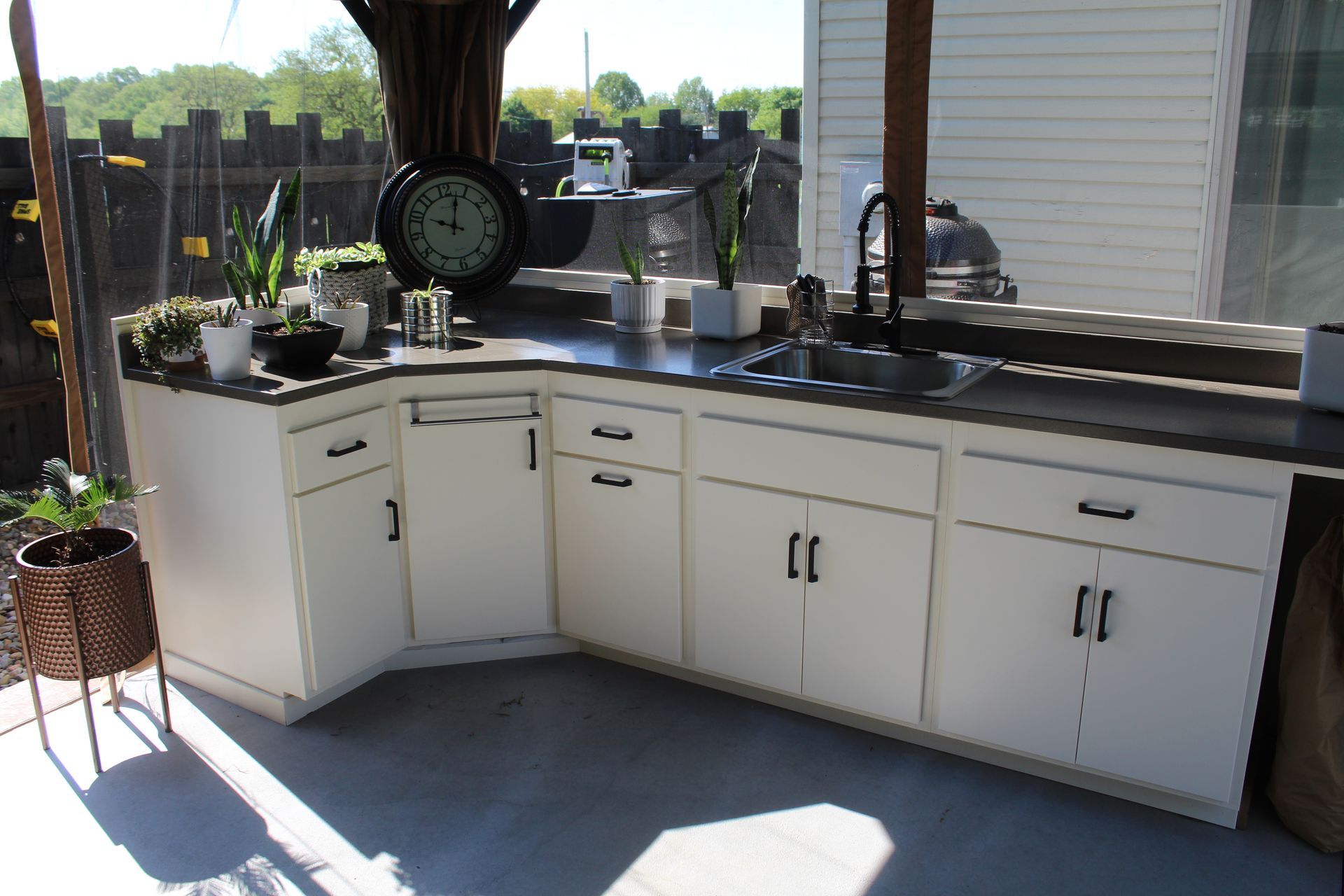 We custom build each cabinet to your specs. Our poly cabinets are made with marine-grade High Density Polyethylene (HDPE), so it will not rot, rust, corrode or tarnish. It also has a UV-inhibitor, so it will not fade in sunlight